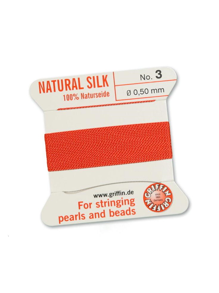 Fil de soie naturelle 0.5 mm corail 2m + 1 aiguille